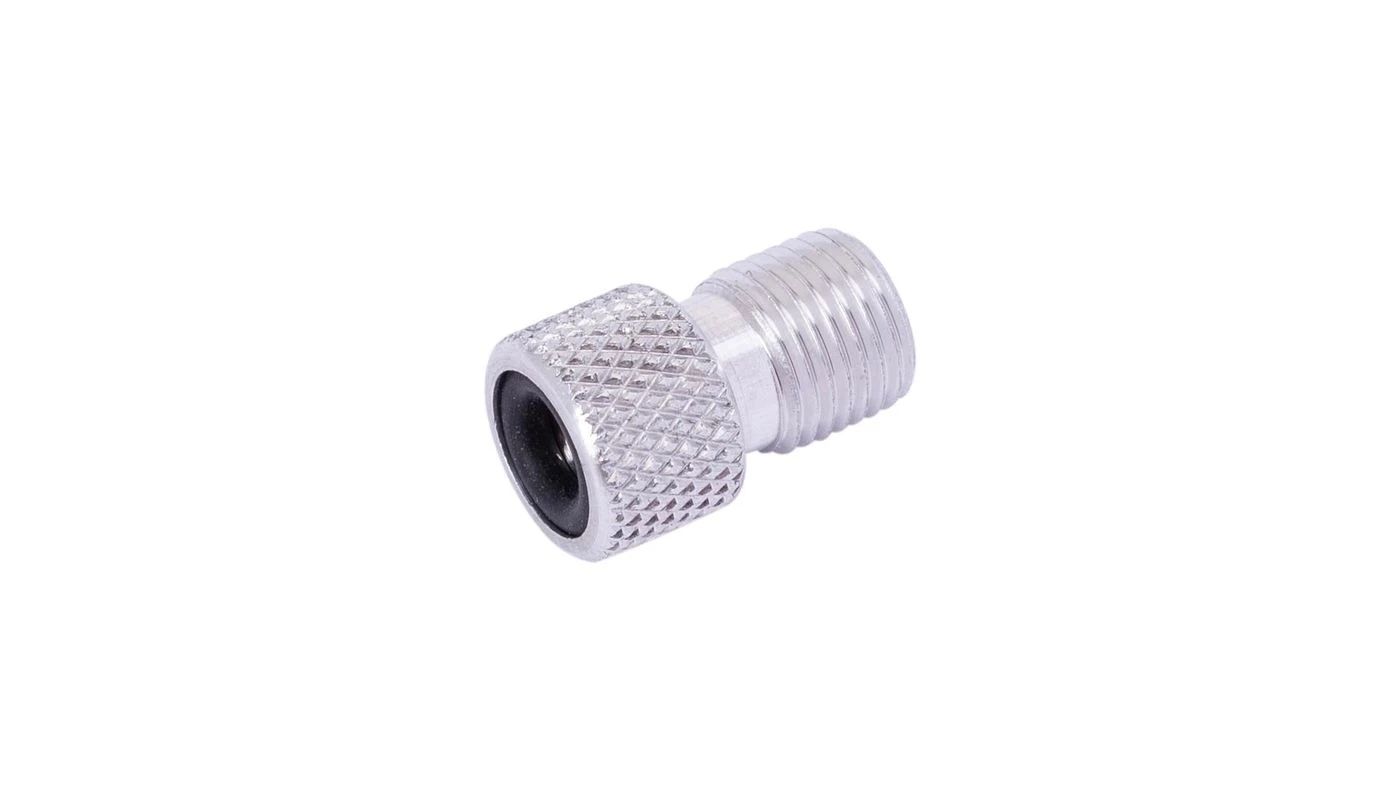 Mit eingepresstem O-Ring, damit keine Luft entweichen kann; zum Aufpumpen von Sclaverand und Dunlop-Ventilen; aus Aluminium -> 1 VE