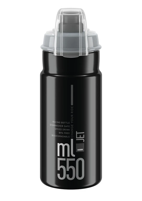 Trinkflasche Elite Jet Plus, 550ml, Schwarz/grau, Polyethylen