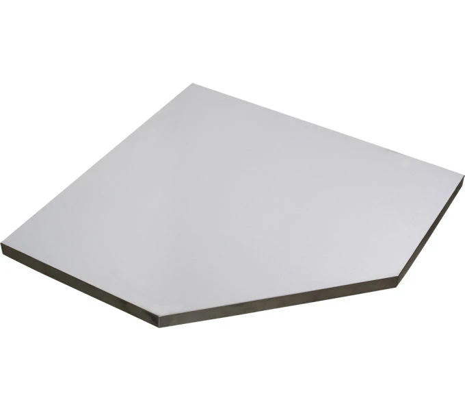 38 mm starke Sperrholzplatte mit gebrstetem Edelstahlblech berzogen.